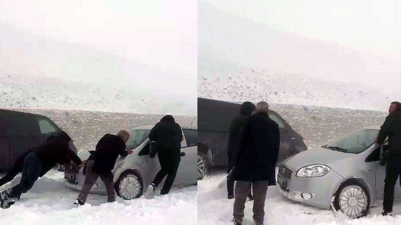 Erzurum-Tekman kara yolu Palandöken geçidinde kar yağışı sonrası bazı araçlar yolda kaldı. Buzlanma nedeniyle yolda ilerlemekte güçlük çeken sürücüler, yoldan geçen diğer sürücülerin halat yardımıyla çekilerek kurtarıldı.