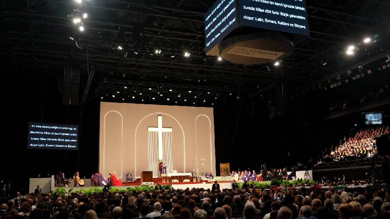 Vatikan Devlet Başkanı ve Katoliklerin ruhani lideri Papa 14'üncü Leo, Türkiye ziyaretinin üçüncü gününde İstanbul'daki Volkswagen Arena'da binlerce kişinin katılımıyla düzenlenen ayini yönetti. İstanbul Sarıyer'deki salonda düzenlenen tören, Türkiye tarihinde kilise dışında yapılan ilk ayin oldu. Salonda 4 bin izleyicinin olduğu belirtiliyor.
