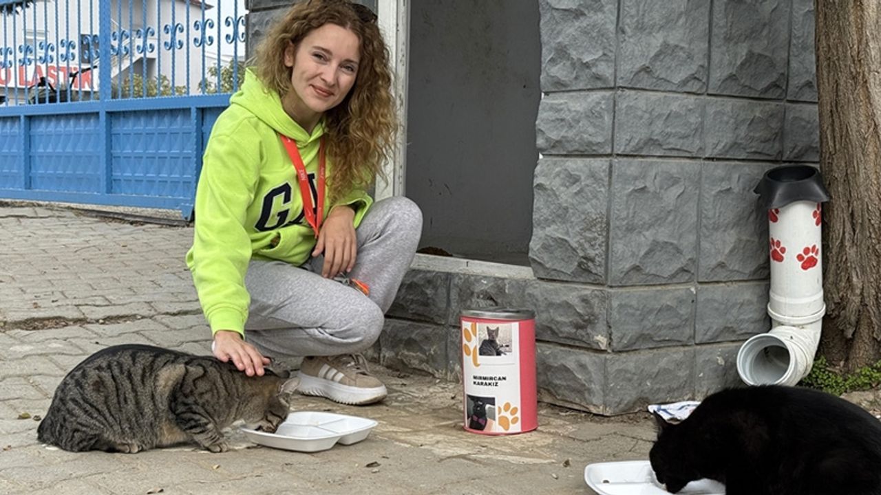 Öğretmen Pelin Gül, AA muhabirine, kedileri beslemekten keyif aldığını söyledi.