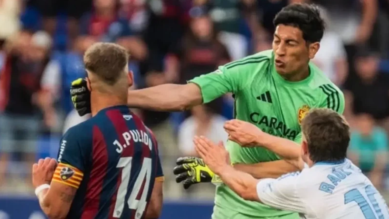 İspanya 2. Futbol Ligi ekiplerinden Real Zaragoza’nın kalecisi Esteban Andrada, Huesca deplasmanında yaşanan olaylar sonrası ağır bir ceza aldı. İspanya Futbol Federasyonu Disiplin Komitesi, karşılaşmanın son dakikalarında saha ortasına kadar koşarak rakibi Jorge Pulido’ya yumruk atan Andrada’ya, çift sarı karttan 1 maç ve şiddetli hareketten 12 maç olmak üzere toplam 13 maç ceza verdi.