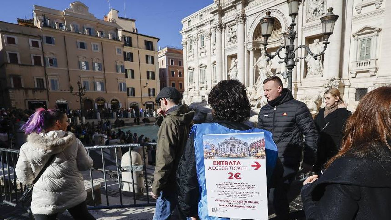 Roma'nın her dönem yoğun turist çeken noktalarından olan Trevi Çeşmesi'nde turistler genelde dilek dileyip bozuk paraları havuzu içine atıyor. Burada bir süredir gündemde olan ve Roma Belediye Başkanı Roberto Gualtieri'nin 19 Aralık 2025'te duyurduğu biletli giriş sistemi bugün resmen başladı. Turistler bugünden itibaren bu güzel çeşmede dilek dilemek için 2 euro (yaklaşık 100 TL) ödeyecek.