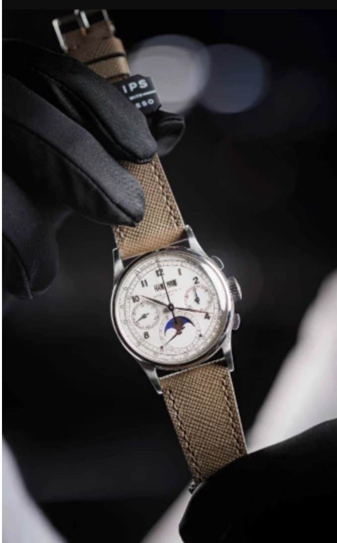 İsviçre’nin Cenevre kentinde düzenlenen açık artırmada Patek Philippe Perpetual Calendar Chronograph Reference 1518 modeli saat, 14.2 milyon İsviçre frangı (744 milyon TL) karşılığında satıldı.