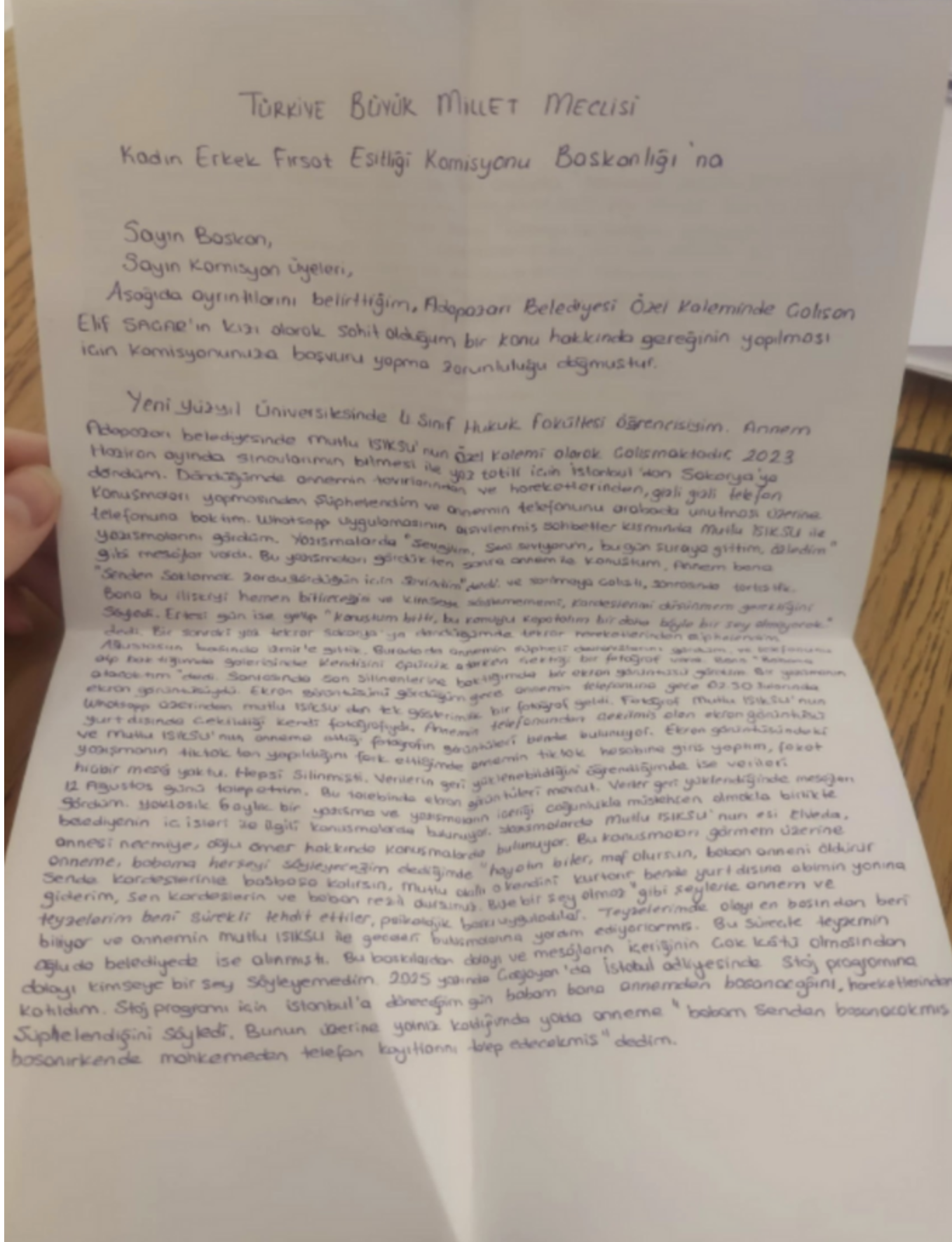Ceyda Saçar, olayın detaylarını Meclis’e yazdığı dilekçede şu şekilde açıkladı: