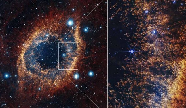 NASA’ya ait James Webb Uzay Teleskobu, Helix Bulutsusu olarak bilinen ve popüler kültürde “Sauron’un Gözü” adıyla anılan gezegenimsi bulutsunun şimdiye kadarki en detaylı görüntülerini paylaştı. Webb’in kızılötesi gözleri, ölmekte olan bir yıldızdan uzaya savrulan gaz ve toz katmanlarını binlerce kuyruklu düğümle birlikte gözler önüne seriyor.