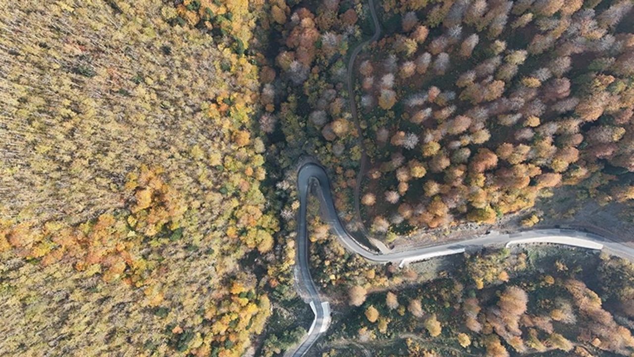 Bölgedeki sonbahar güzelliği dron ile görüntülendi.