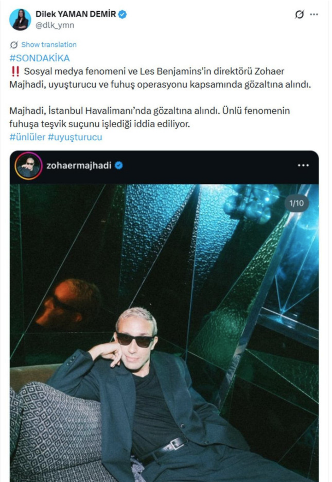 Gazeteci Dilek Yaman Demir soruşturmada sosyal medya fenomeni ve Les Benjamins'in direktörü Zohaer Majhadi'nin de uyuşturucu ve fuhuş operasyonu kapsamında gözaltına alındığını aktardı.