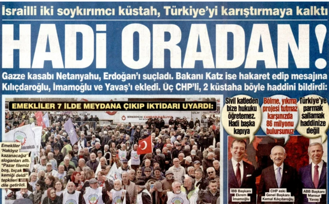 Özdil’in ayrılığının ardından Sözcü gazetesinde dikkat çeken bir gelişme yaşandı. Gazete, CHP’li isimlerin İsrail’e yönelik tepkilerini manşetine taşıdı.