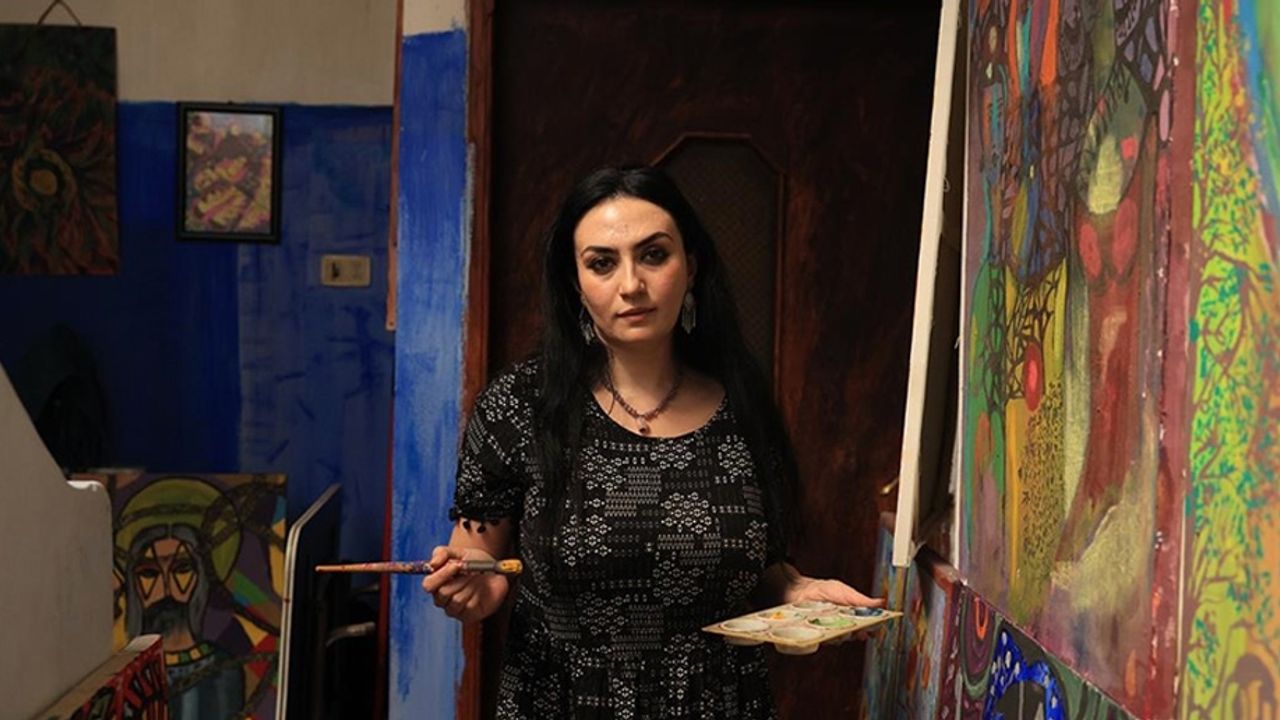 Suriyeli sanatçı, resimlerinde özellikle yorgun yüzlerin, yoksulların ve hüzün taşıyan insanların portrelerine odaklandığını anlattı.