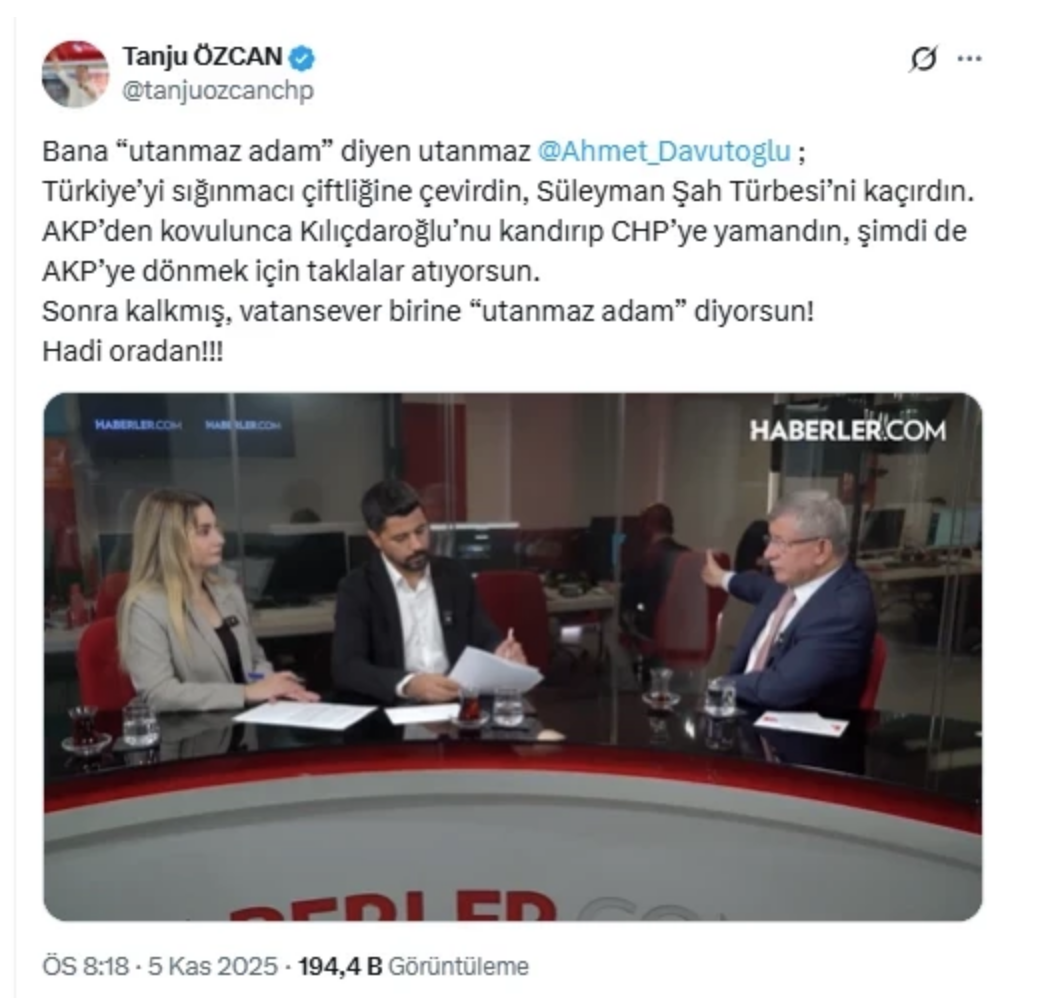 TANJU ÖZCAN'DAN DAVUTOĞLU'NA YANIT