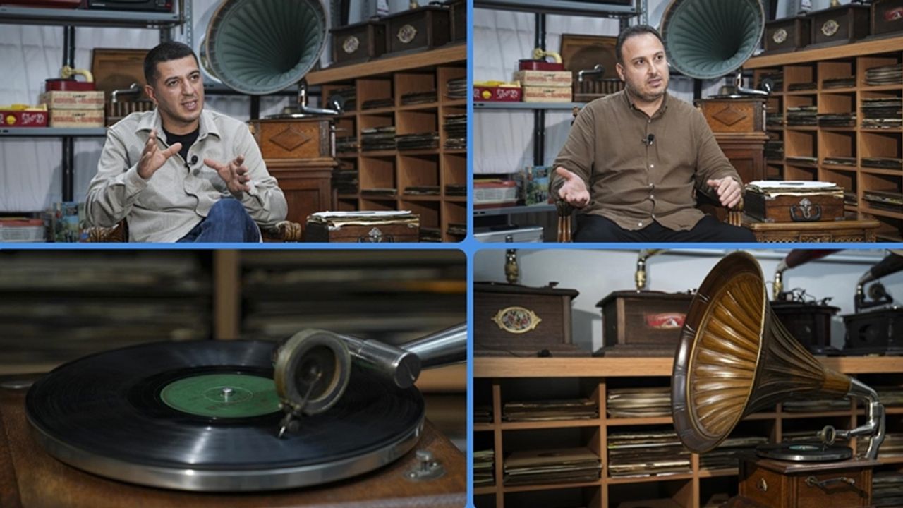 Hakan Balcı ve Yunus Savaş, farklı ülkelerden topladıkları nadir taş plakların hikayesini, koleksiyonun oluşturulma sürecini ve gramofon dinletilerini AA muhabirine anlattı.
