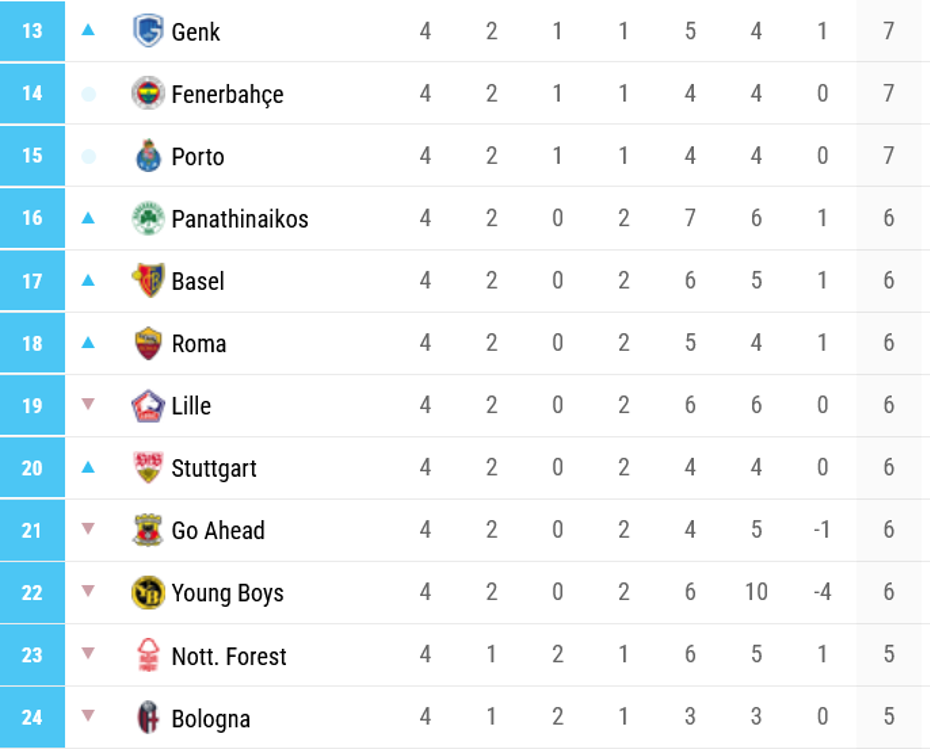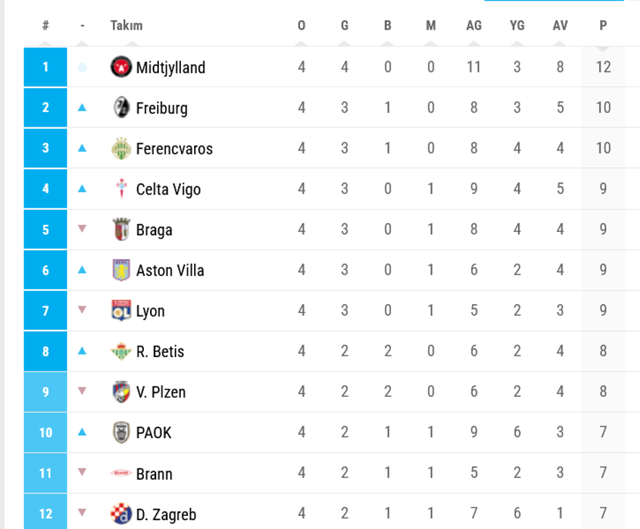 Fenerbahçe ilk 4 haftayı, ilk 8'de tamamlayamamış oldu. Midtjylland ise ligde, 4 haftadaki tüm maçlarını kazanan tek takım oldu.