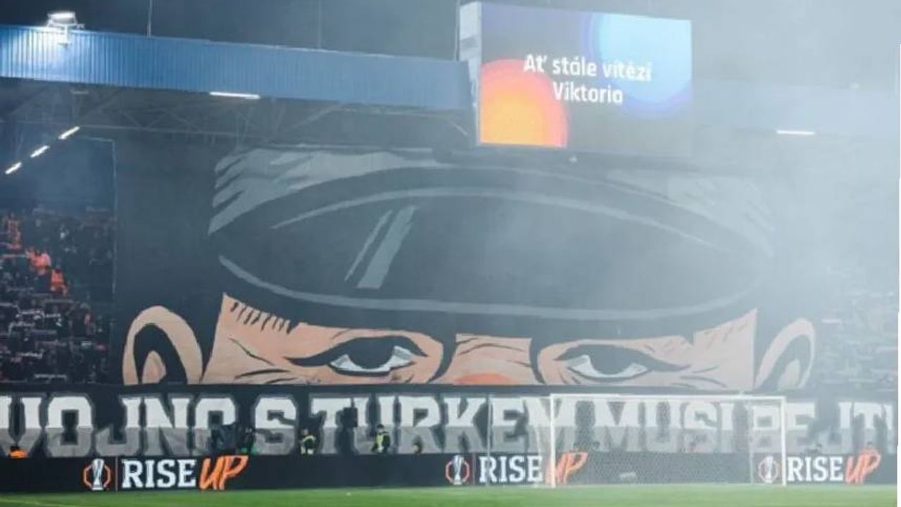 Viktoria Plzen taraftarları, maç öncesinde "Türklerle savaş olmalı" yazılı bir pankart açmıştı.