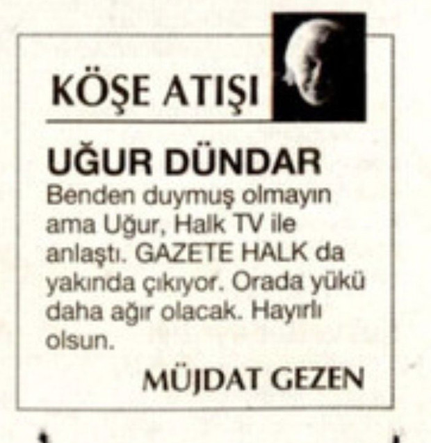 Uğur Dündar’ın yakın arkadaşı Müjdat Gezen, duayen gazetecinin yeni adresini Cumhuriyet Gazetesi'nde bugün yayımlanan 'Köşe Atışı'nda duyurdu.