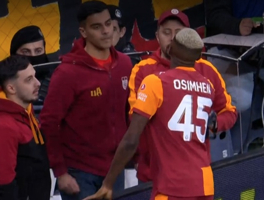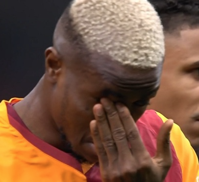 Victor Osimhen, Galatasaray taraftarlarının kendisi ve annesi için hazırladığı koreografiyi görünce duygularına hakim olamadı ve gözyaşlarını tutamadı.