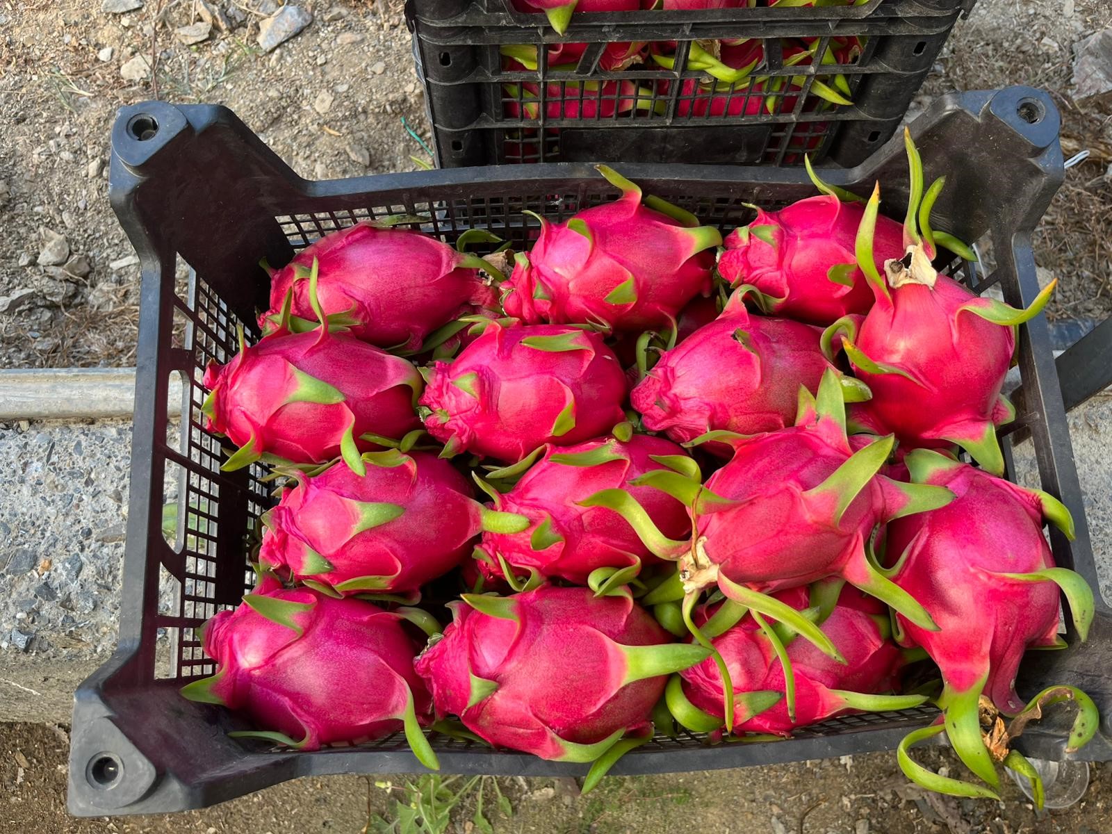 ŞOK - Akdeniz'in sıcak ve verimli arazilerinde tropikal meyve üretimi son hız devam ediyor. Bölgedeki iklim avantajlarını değerlendiren üreticiler dikenli yapısı nedeniyle toplanması zahmetli olan ejder meyvelerini plastik kasalara yerleştirip, araçla hal pazarına sevk ediyor. Hasat edilen meyveler burada boyutlarına göre ayrılıyor ve kilogram fiyatı 100 ila 150 TL arasında değişen ücretlerle tüccarlara satılıyor. Ejder meyvesi, hem yurt içi pazarda hem de yurt dışı ihracatında sofralarda yerini alıyor.