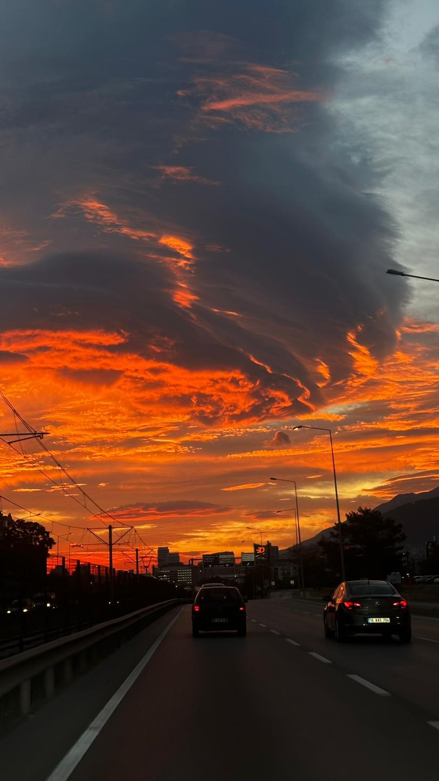 Gün doğumuyla birlikte turuncu ve kırmızı tonlarına bürünen gökyüzü, adeta kartpostallık manzaralar ortaya çıkardı.Bursa'da mercek bulutunu andıran ve katmanlı yapısıyla dikkat çeken bulutu gören vatandaşlar cep telefonlarıyla ilginç manzarayı görüntüleyerek paylaştı.
