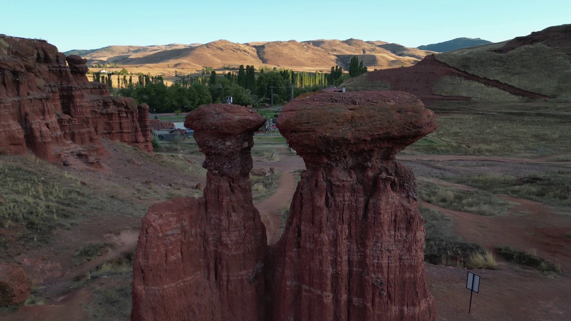 ŞOK - Kırmızı renkli tüf kayalarının rüzgâr ve yağmur etkisiyle şekillenmesi sonucu ortaya çıkan bu doğal güzellikler, Kapadokya'daki peri bacalarına benzerliğiyle dikkat çekiyor.