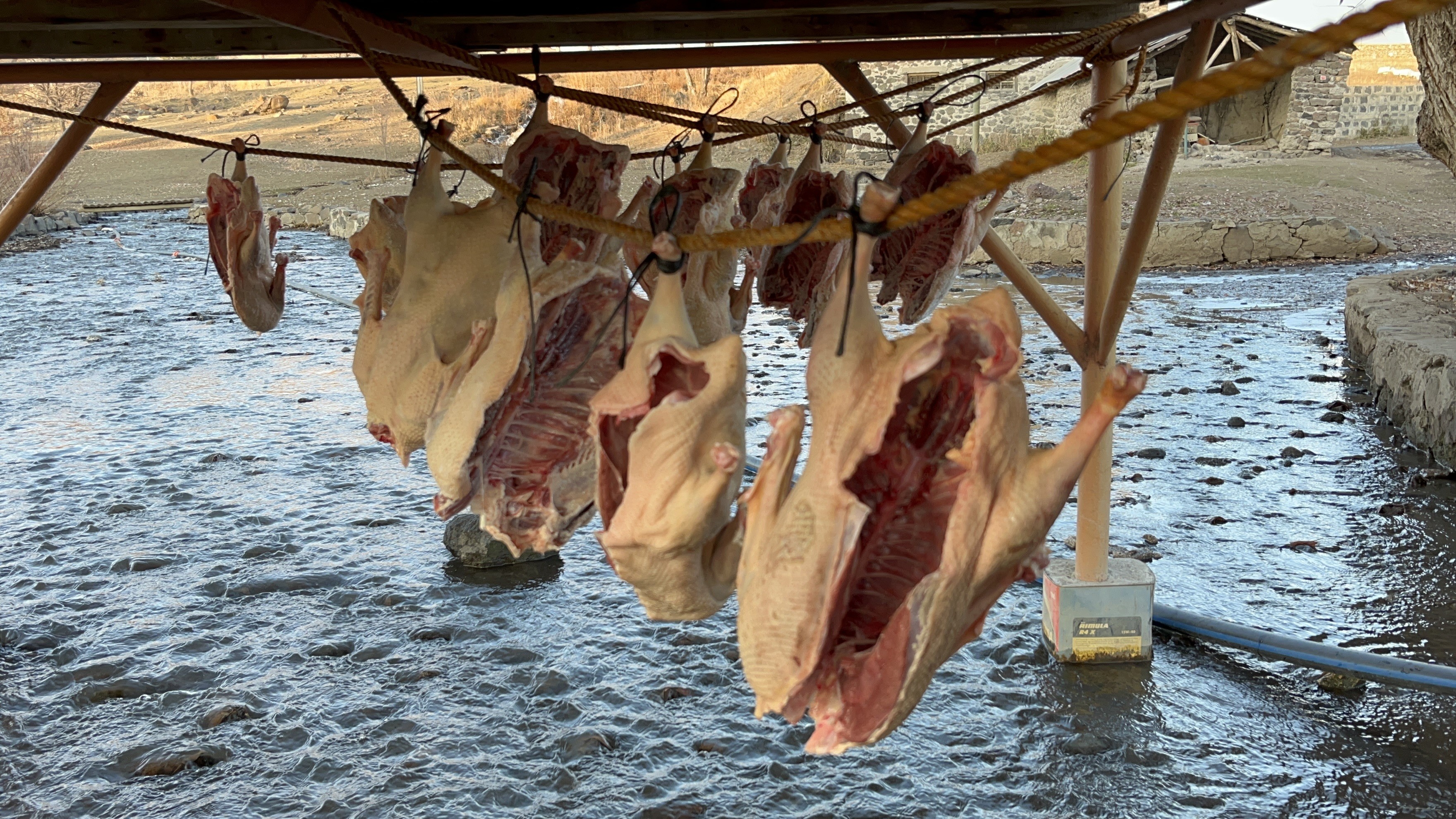 Kaz etinin lezzetini artıran ve uzun süre saklanmasını sağlayan bu geleneksel yöntem, Kars’ın iklim şartlarından güç alıyor. Etler, sabah ve akşam ayazını alması için yüksek yerlere asılıyor; bu, hem rüzgar almasını hem de soğuğun iyice işlemesini sağlıyor.
