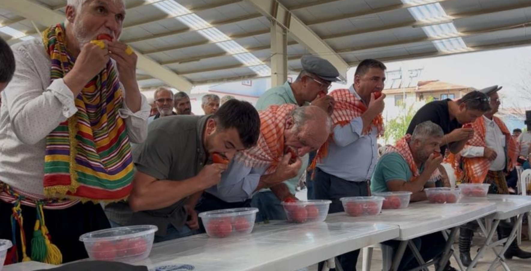 Şenliğin bir diğer renkli etkinliği ise "Domates Yeme Yarışması" oldu. Katılımcılar, dereceye girebilmek için tabaklara koyulan domatesi en hızlı şekilde yemeye çalıştı. İzleyicilerin tezahüratları arasında geçen eğlenceli yarışma, hem seyirciler hem de yarışmacılar için keyifli anlara sahne oldu.