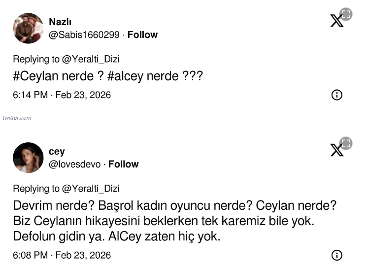 Sosyal medyada fragmana dair tepkiler yoğunlaştı. İzleyiciler, “Haydar Ali ve Ceylan nerede?”, “Ceylan bu dizinin başrolü ama başrol yok”, “Yine Ceylan yok dalga mı geçiyorsunuz?” gibi yorumlarla eleştirilerini dile getirdi.