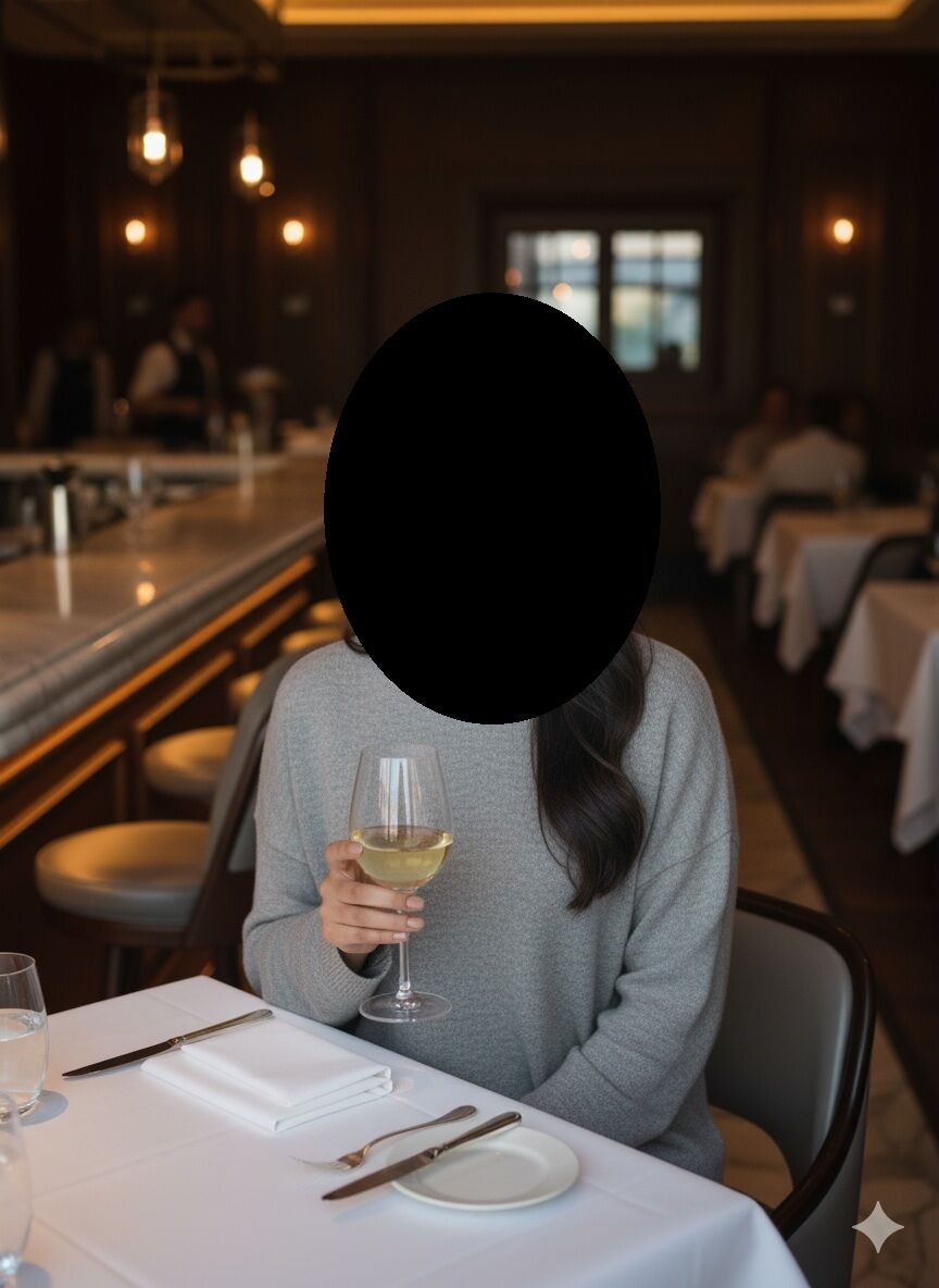 - Bu kızı lüks bir restoranda elinde beyaz şarap içerken yap. Elinde şarap olsun. Arka planda lüks restoranın içerisi gözüküyor olsun. Kızın üzerinde beyaz renk oversize bir kazak olsun. Kız kameraya doğru bakıyor ve dişleriyle gülüyor olsun. Yüzü sakın değiştirme.