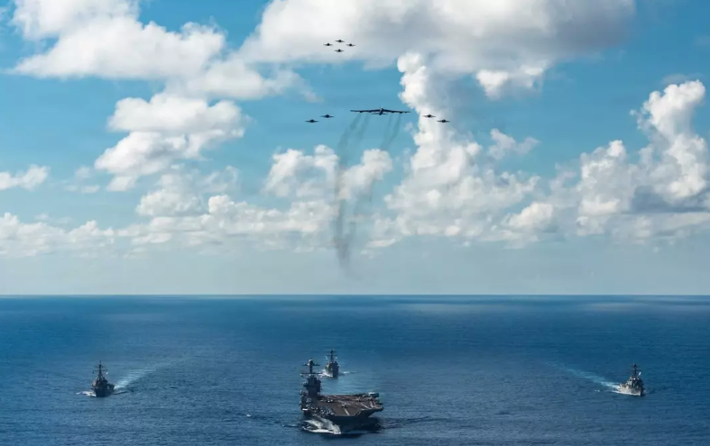 USS Gerald R. Ford liderliğindeki taarruz filosunun 4 binden fazla askeri personel ile düzinelerce taktik askeri uçağı taşıdığı kaydedilerek, "Kendi sınıfının ilk uçak gemisi olan USS Gerald R. Ford, gündüz-gece fark etmeksizin sabit kanatlı uçakların iniş ve kalkışına aynı anda imkan tanıyarak katıldığı operasyonları kesintisiz şekilde destekleyebilmektedir" hatırlatmasında bulunuldu. USS Gerald R. Ford uçak gemisinin yanı sıra, Arleigh Burke sınıfı güdümlü füze destroyerleri USS Bainbridge ve USS Mahan ile entegre hava ve füze savunma komuta gemisi USS Winston S. Churchill dahil çok sayıda askeri varlığın bölgeye konuşlandırıldığı vurgulandı.