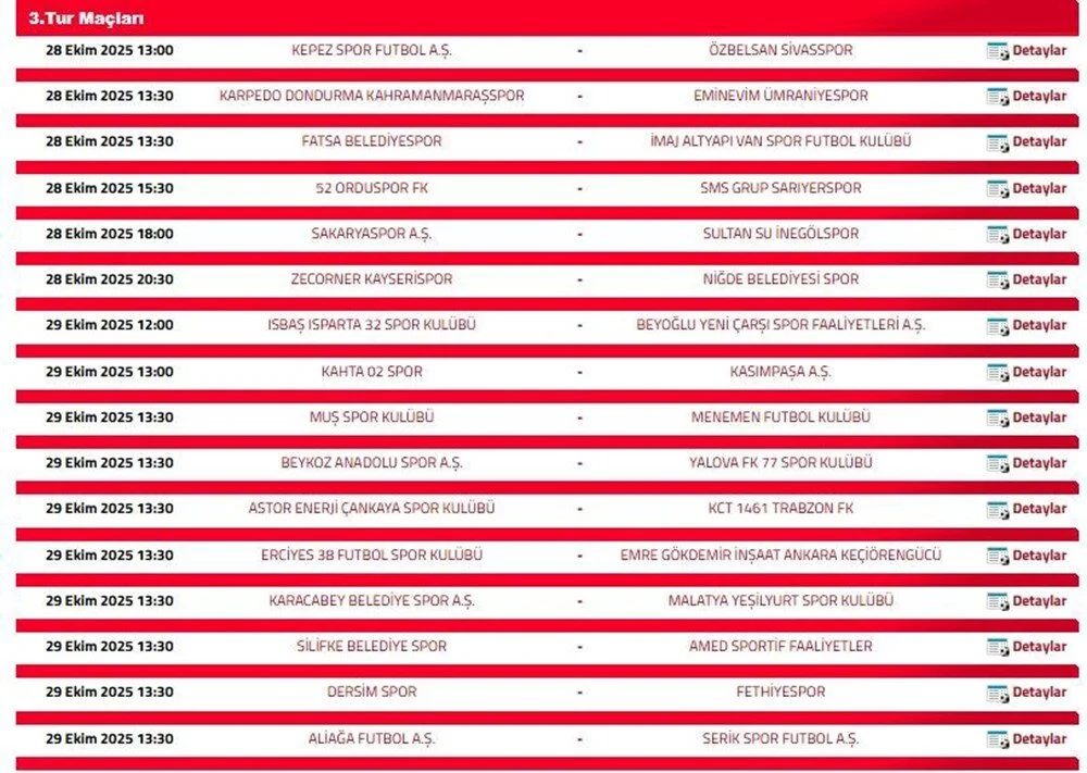 Ziraat Türkiye Kupası 3. eleme turu maçları 28-29-30 Ekim günlerinde yapılacak.